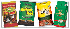 Apresentamos os cafés torrados e moídos Sol Brilhante, Astro Rei, Kuará e o Café Premium torrado em grãos Astro Rei, 500g e 1kg.
