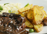 Uma receita no mínimo inusitada: Filé Mignon ao Molho de Café. Um filé mignon selado no azeite acompanhado de molho funghi e finalizado com azeite de café. A receita é servida com batatas ao alho e alecrim e uma saladinha de pupunha desfiado com manjericão.
